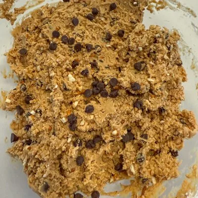 To make the dough, mix together peanut butter and softened butter in a larger bowl using a handheld or stand mixer with a paddle attachment until smooth. Add powdered sugar, crushed pretzels, and vanilla extract and mix until fully combined. If desired, stir in mini chocolate chips.