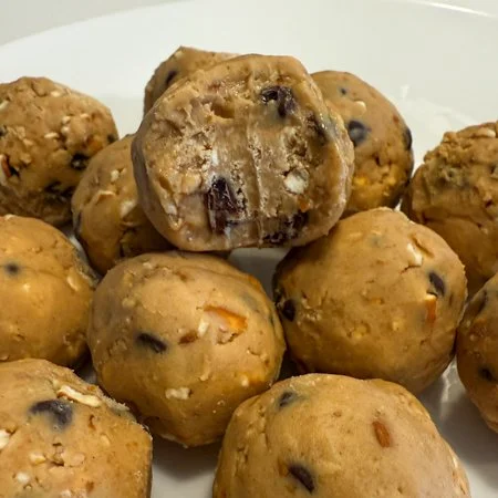 Sweet peanut butter balls with crushed pretzels for added crunch and salt and optional chocolate chips.